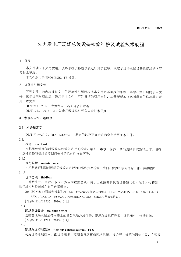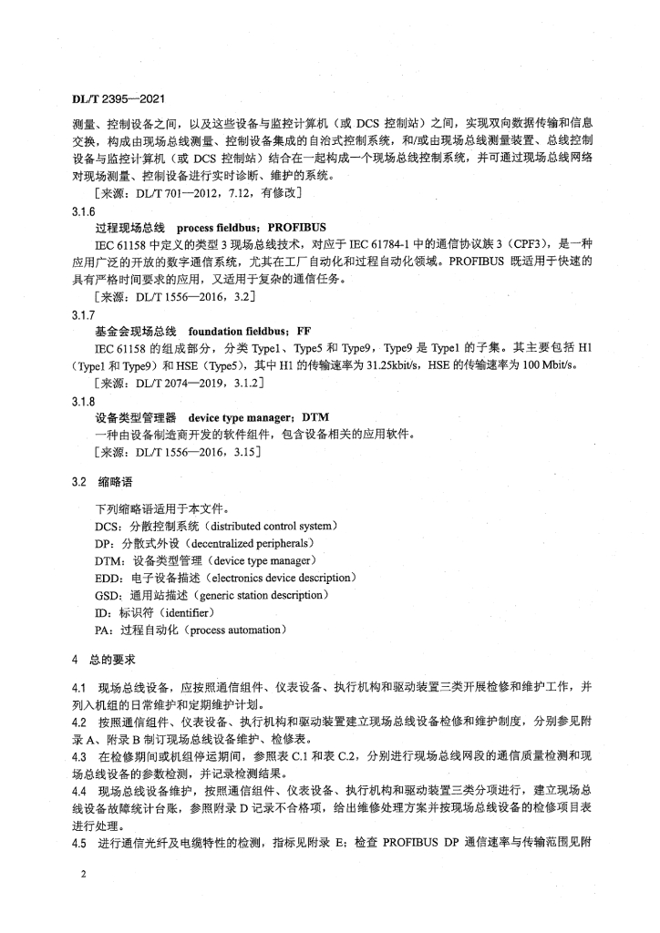 DL/T 2395-2021 火力发电厂现场总线设备检修维护及试验技术规程