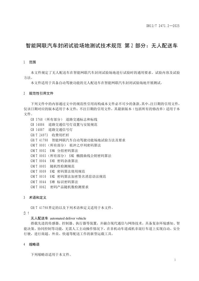 DB11/T 2471.2-2025 智能网联汽车封闭试验场地测试技术规范 第2部分:无人配送车