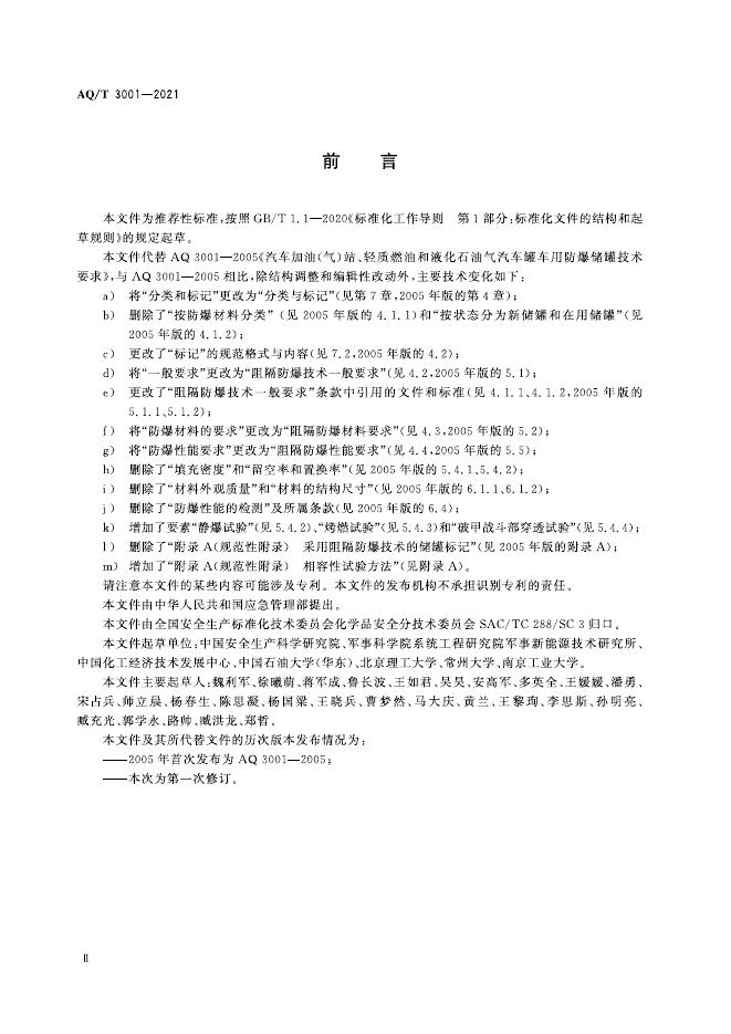 - 代替标准:AQ 3001-2005