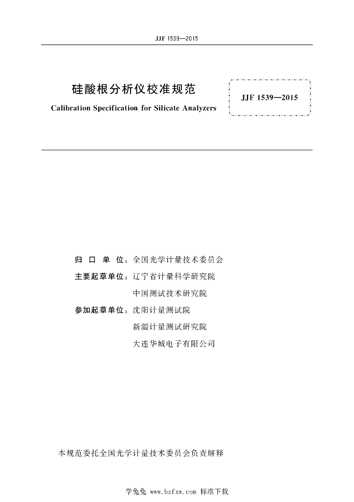 艾明泽(辽宁省计量科学研究院)、李晓滨(中国测试技术研究院)、张文美(辽宁省计量科学研究院)、肖哲(辽宁省计量科学研究院)、张弓(沈阳计量测试院)、白旭(新疆计量测试研究院)、金为民(大连华城电子有限公司)
