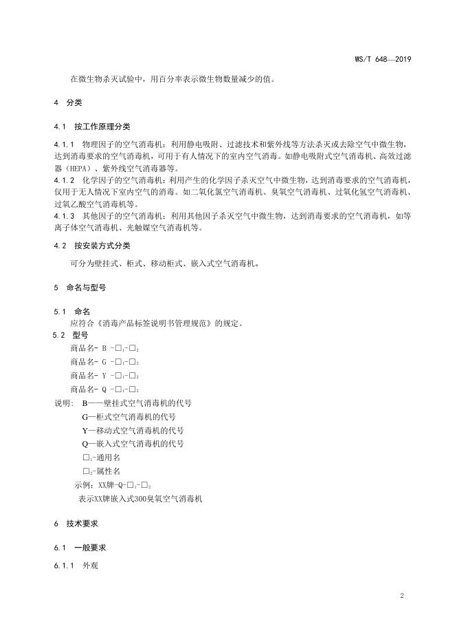 WS/T 648-2019 空气消毒机通用卫生要求