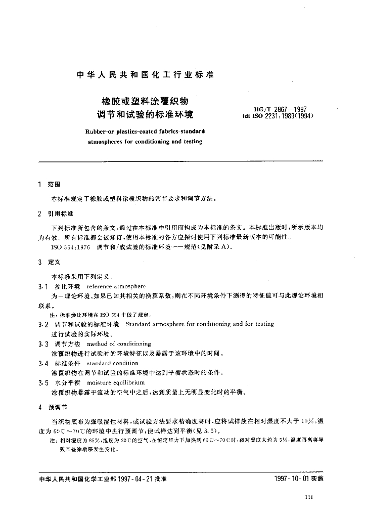 HG/T 2867-1997 橡胶或塑料涂覆织物调节和试验的标准环境