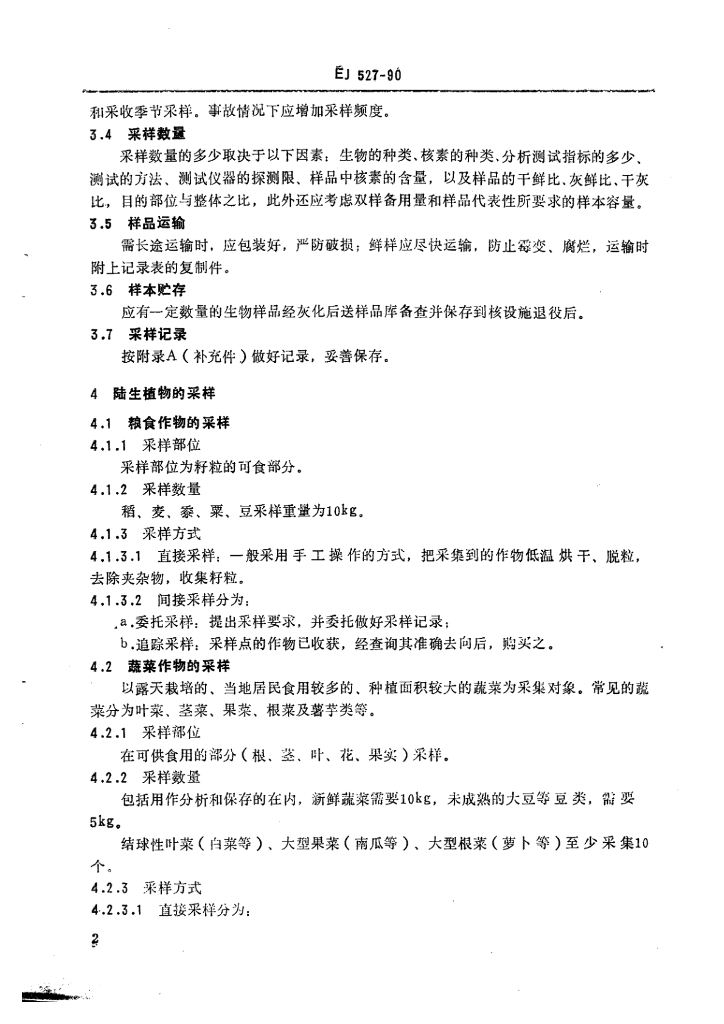 EJ 527-1990 环境辐射监测中生物采样的基本规定