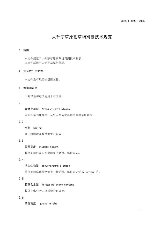 DB15/T 4198-2025 大针茅草原割草场刈割技术规范