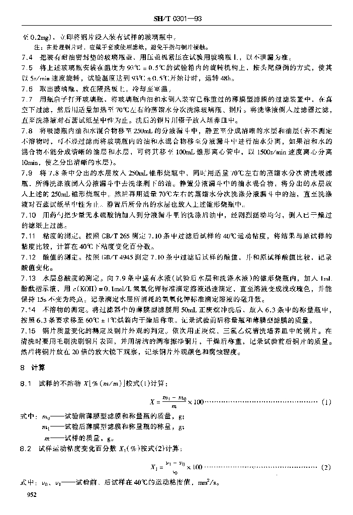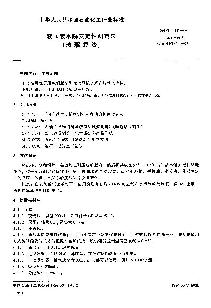 SH/T 0301-1993 液压液水解安定性测定法(玻璃瓶法)