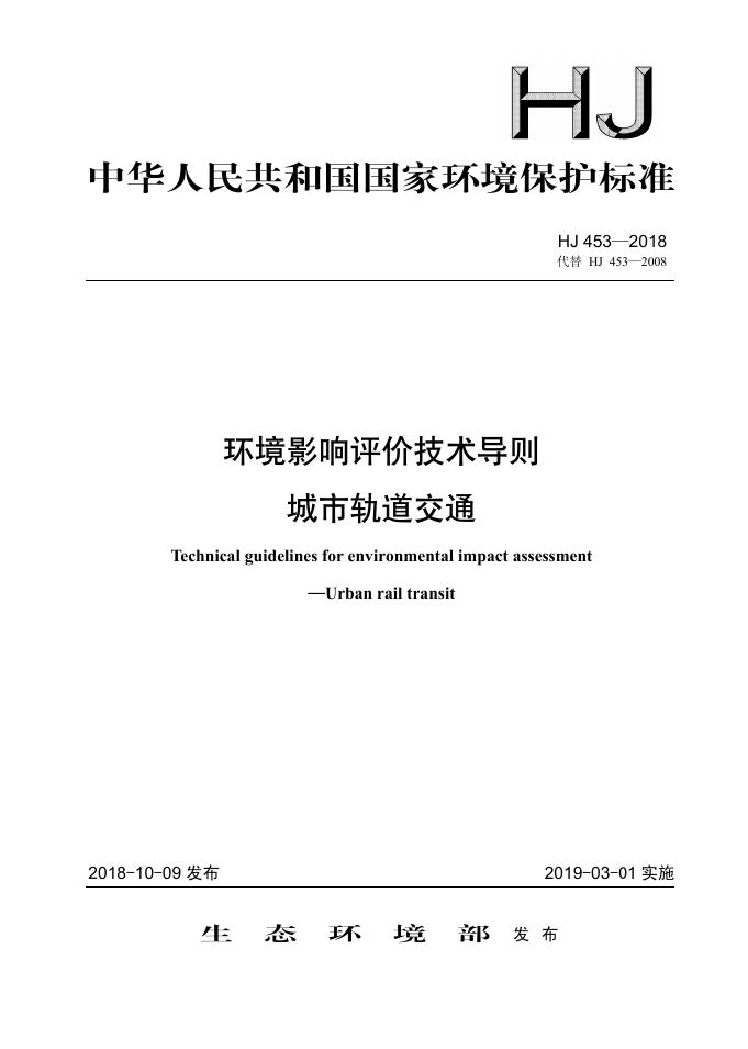 HJ 453-2018 环境影响评价技术导则 城市轨道交通