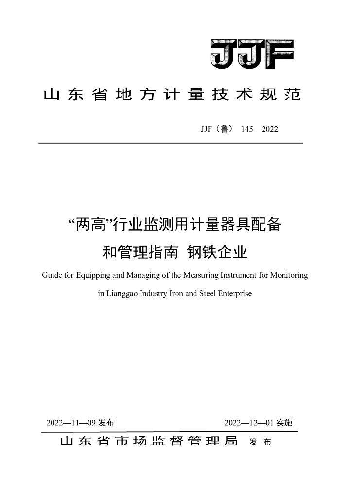 JJF(鲁)145-2022 “两高”行业监测用计量器具配备和管理指南 钢铁企业