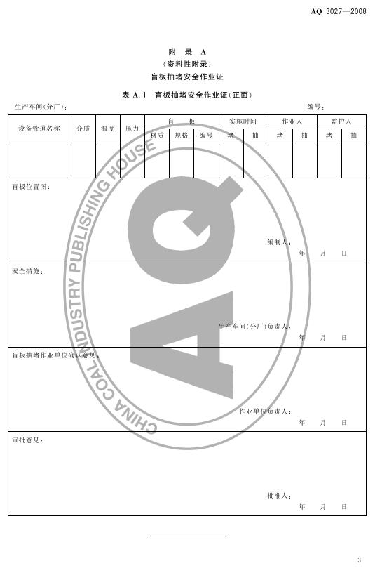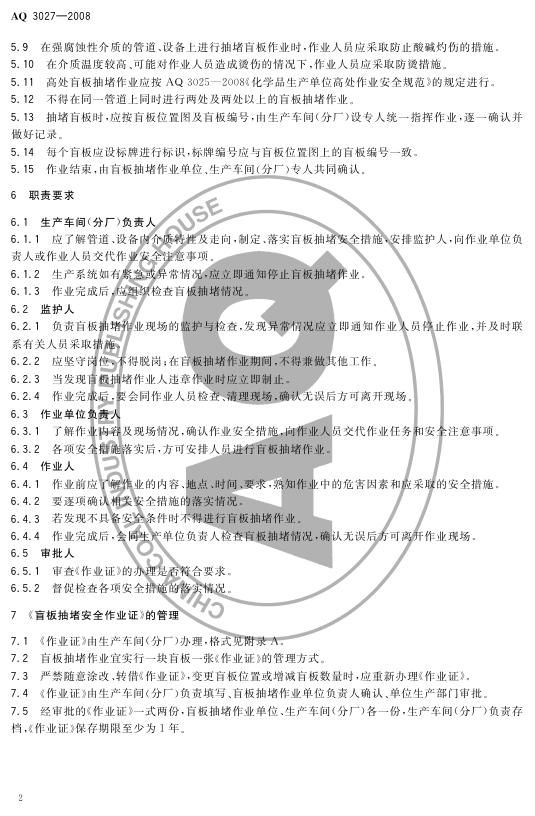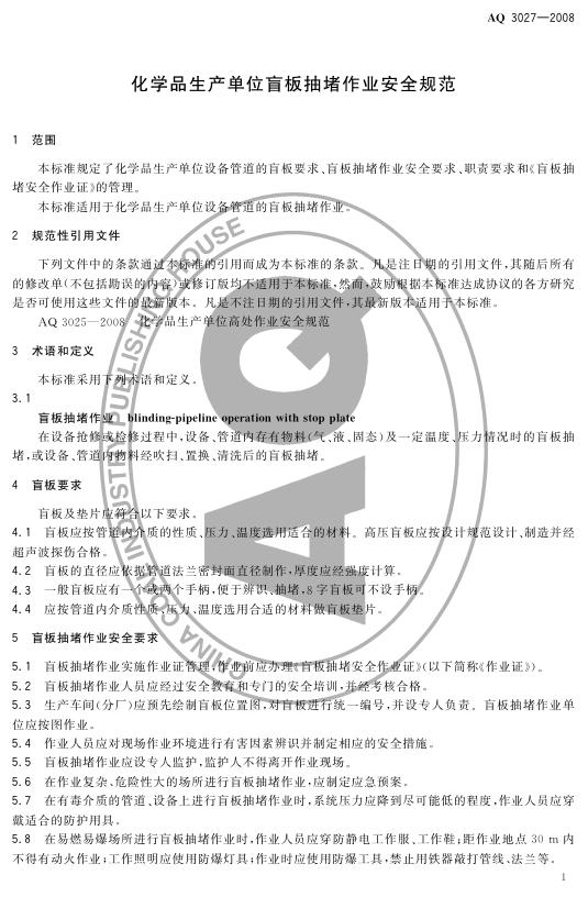 AQ 3027-2008 化学品生产单位盲板抽堵作业安全规范