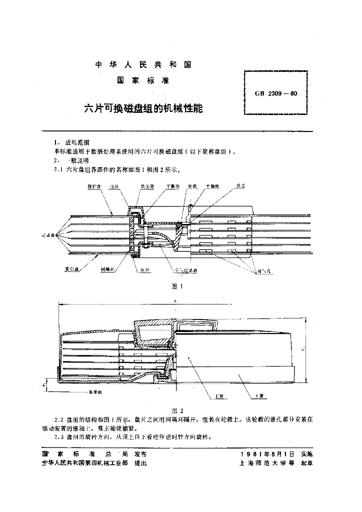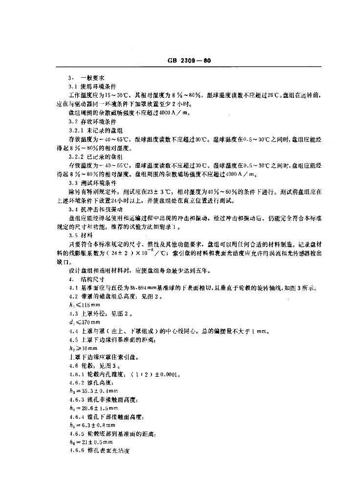 GB/T 2309-1980 六片可换磁盘组的机械性能
