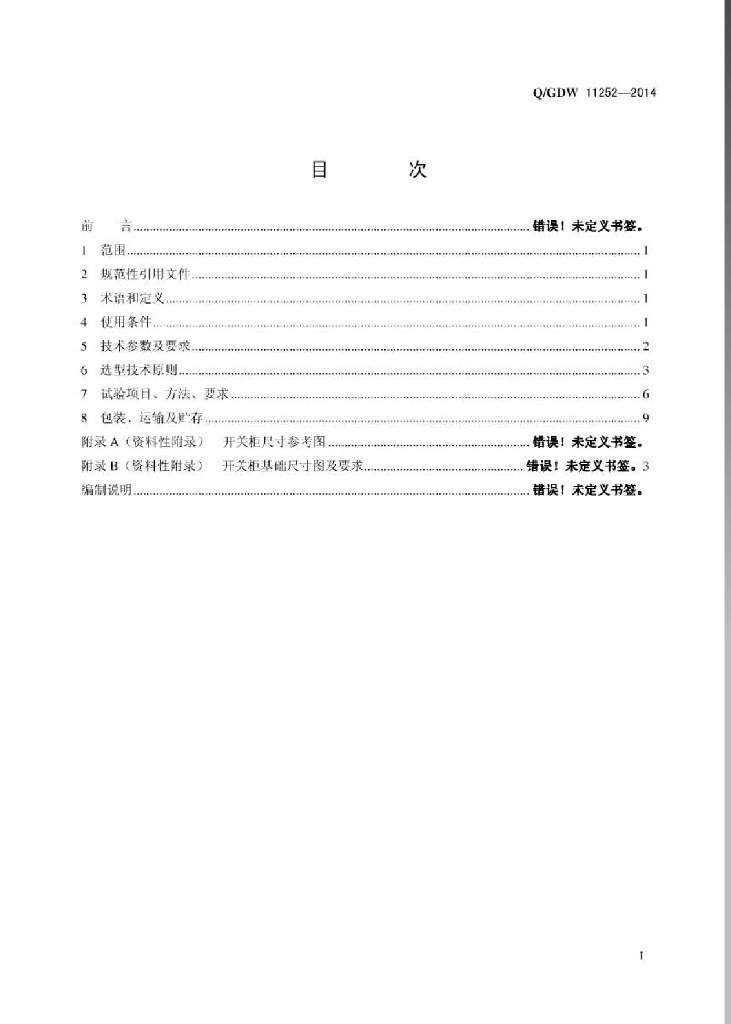 Q/GDW 11252-2014 10kV高压开关柜选型技术原则和检测技术规范