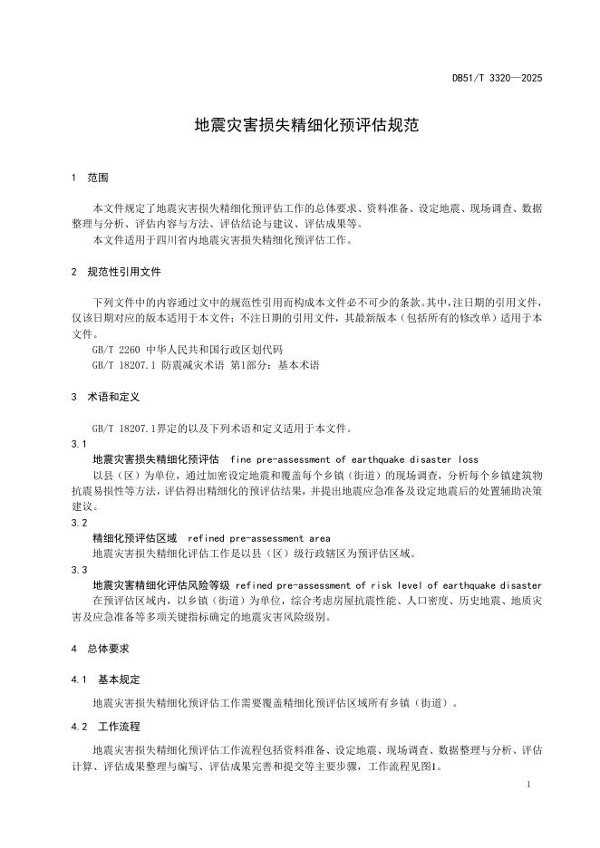 DB51/T 3320-2025 地震灾害损失精细化预评估规范