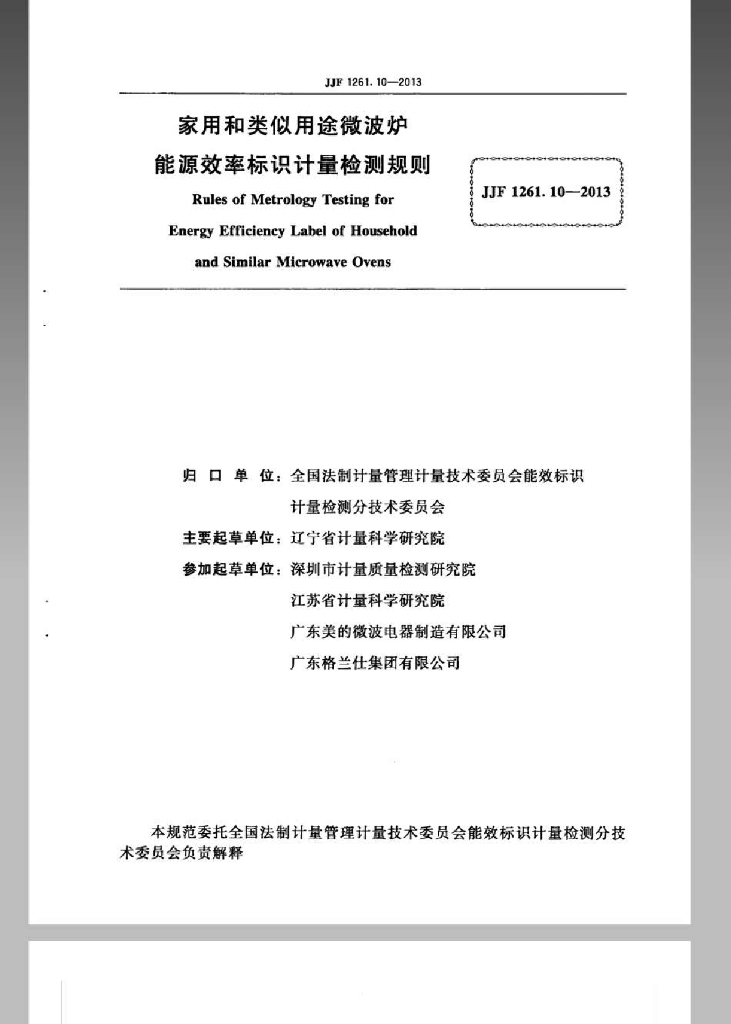 辽宁省计量科学研究院、深圳市计量质量检测研究院、江苏省计量科学研究院、广东美的微波电器制造有限公司、广东格兰仕集团有限公司