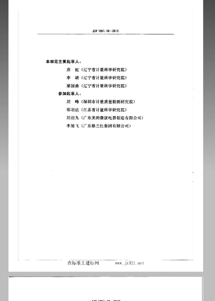唐虹(辽宁省计量科学研究院)、李诺(辽宁省计量科学研究院)、梁国鼎(辽宁省计量科学研究院)、刘峰(深圳市计量质量检测研究院)、邵羽达(江苏省计量科学研究院)、刘迎九(广东美的微波电器制造有限公司)、李旭飞(广东格兰仕集团有限公司)