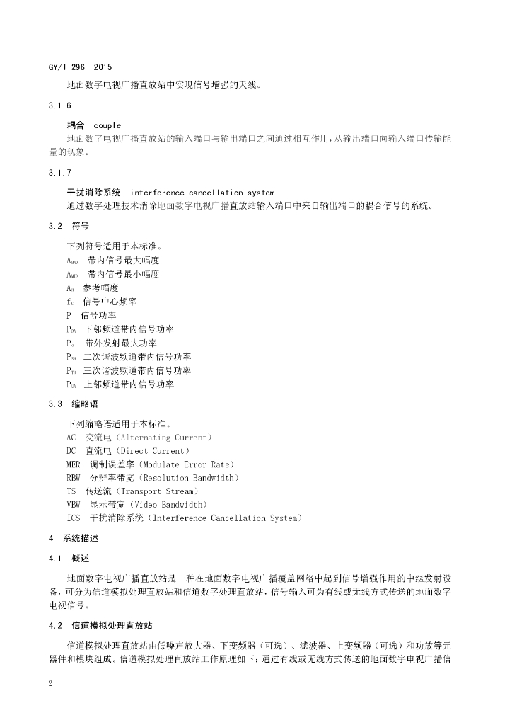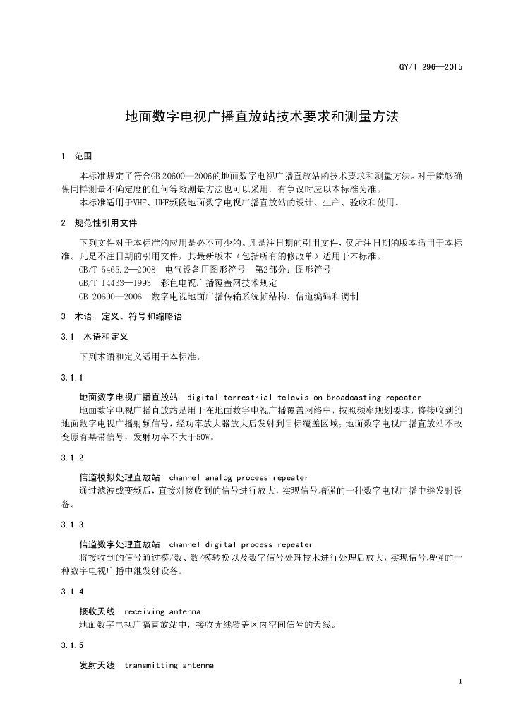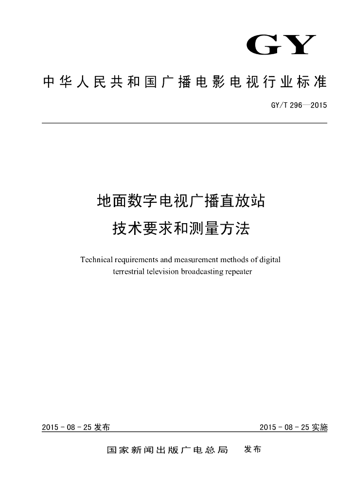 GY/T 296-2015 地面数字电视广播直放站技术要求和测量方法