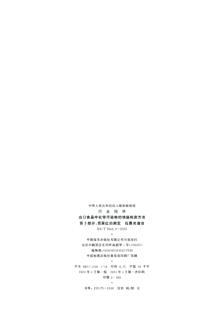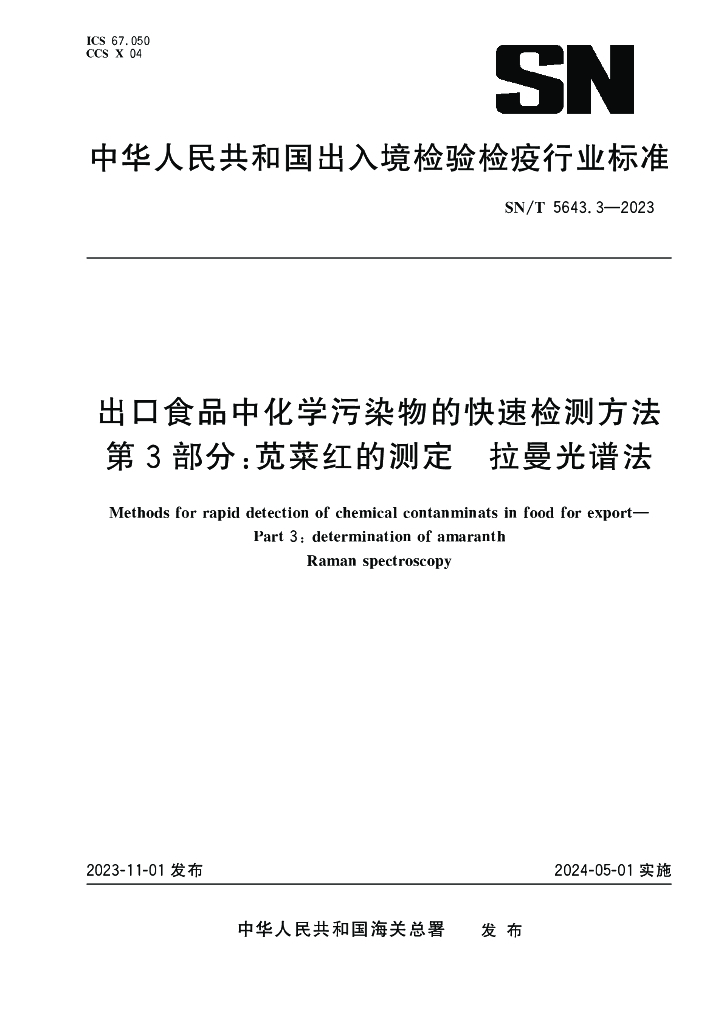 SN/T 5643.3-2023 出口食品中化学污染物的快速检测方法 第3部分:苋菜红的测定 拉曼光谱法