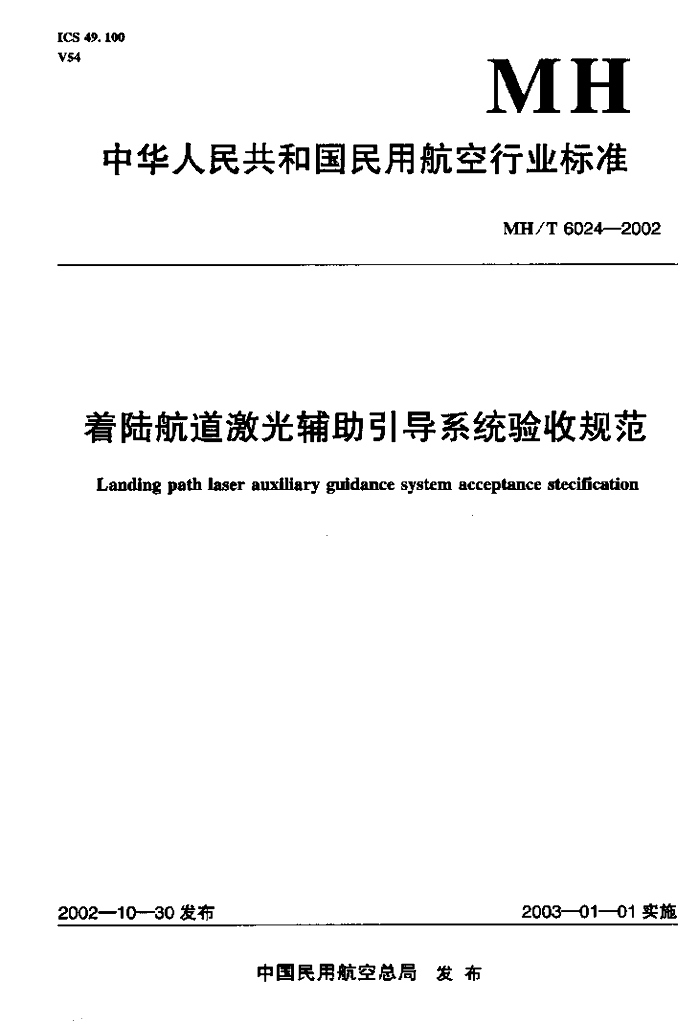 MH/T 6024-2002 着陆航道激光辅助引导系统验收规范