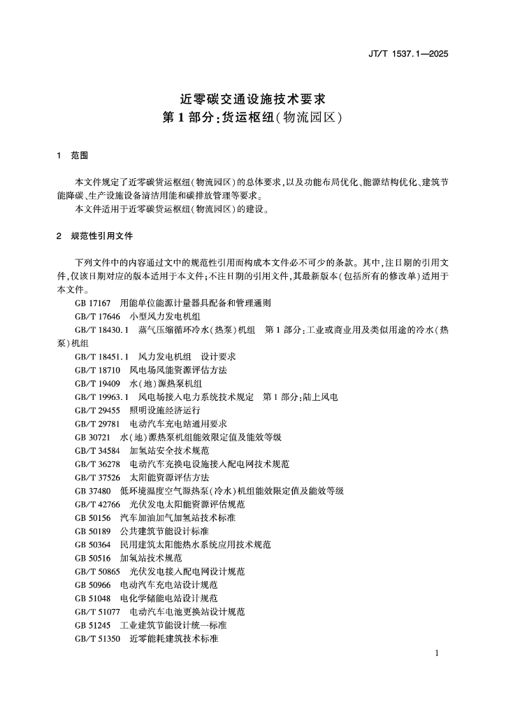 JT/T 1537.1-2025 近零碳交通设施技术要求 第1部分:货运枢纽(物流园区)