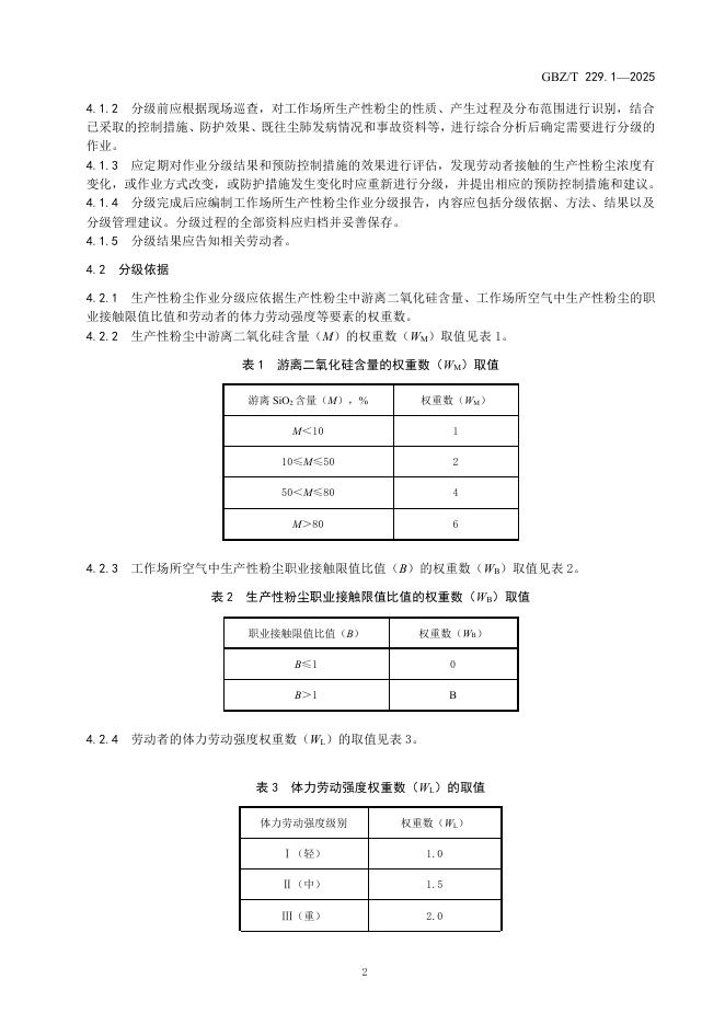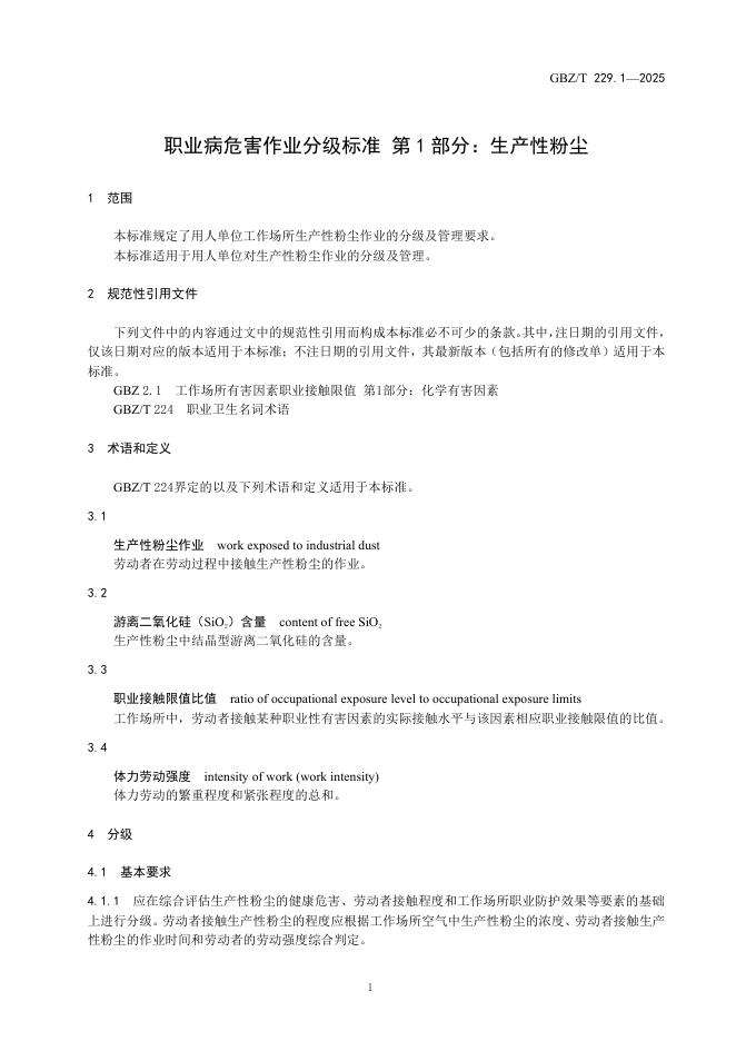 GBZ/T 229.1-2025 职业病危害作业分级标准 第1部分:生产性粉尘