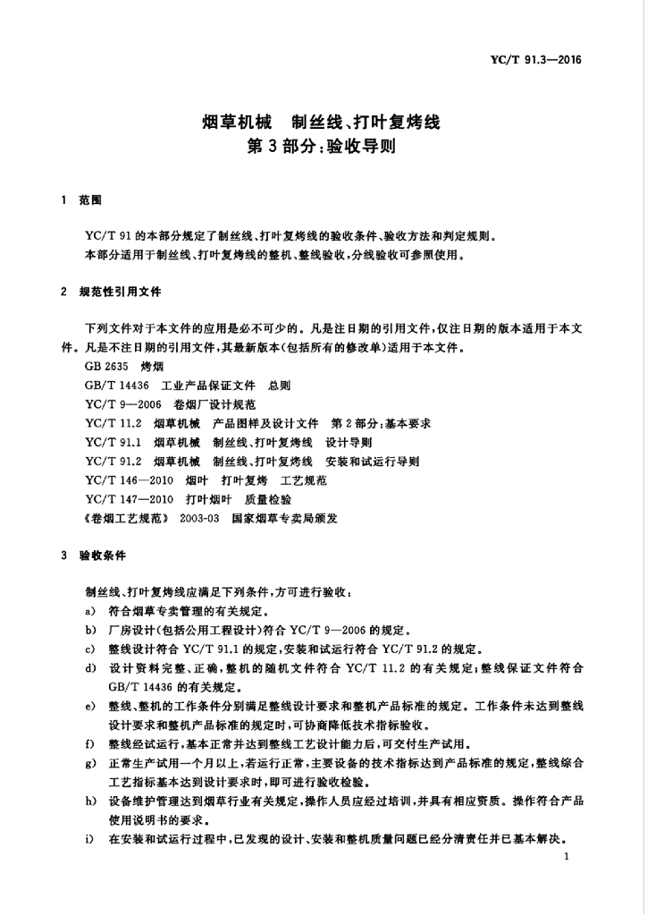 YC/T 91.3-2016 烟草机械 制丝线、打叶复烤线 第3部分:验收导则
