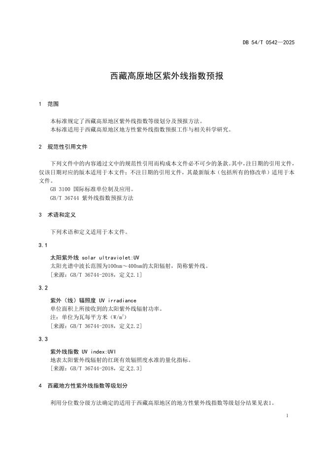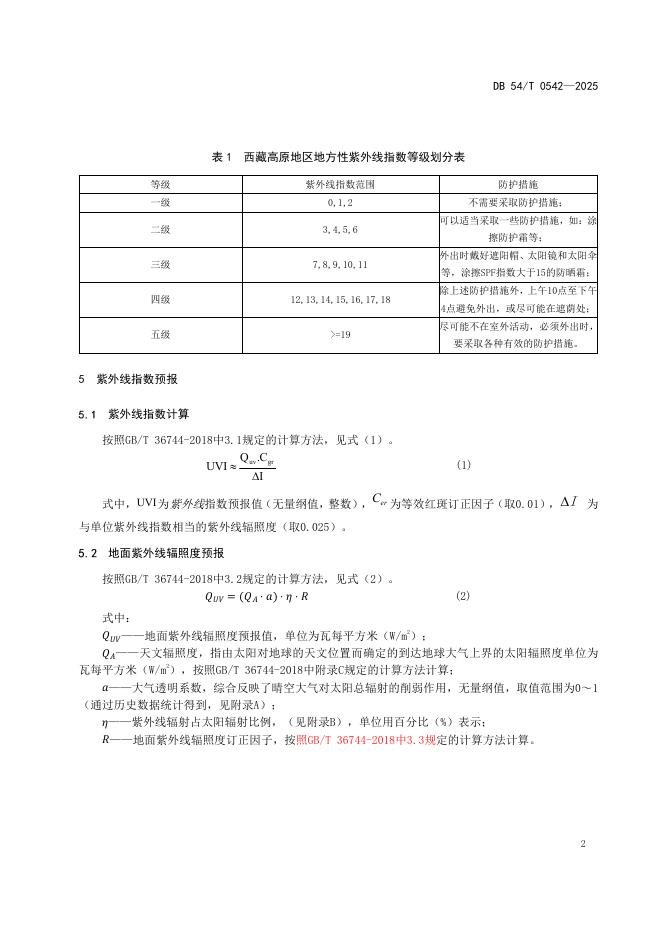 DB54/T 0542-2025 西藏高原地区紫外线指数预报