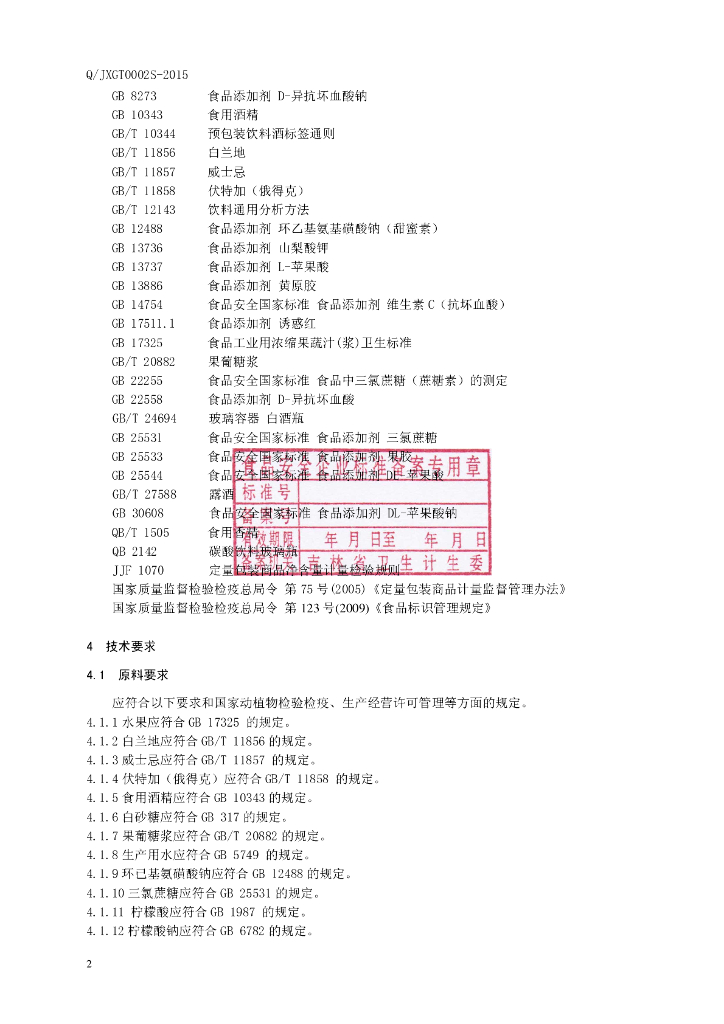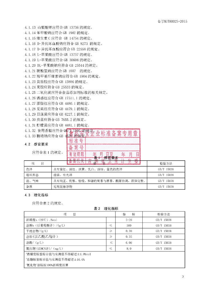 Q/JXGT 0002S-2015 吉林香格特酒业有限公司 水果汽酒(配制型)