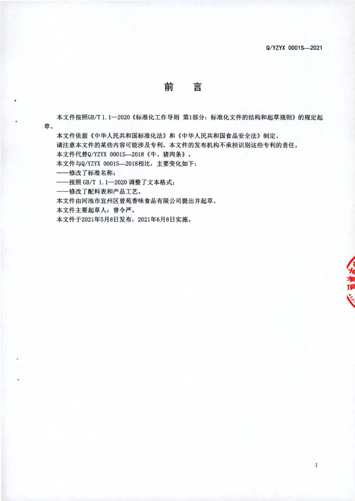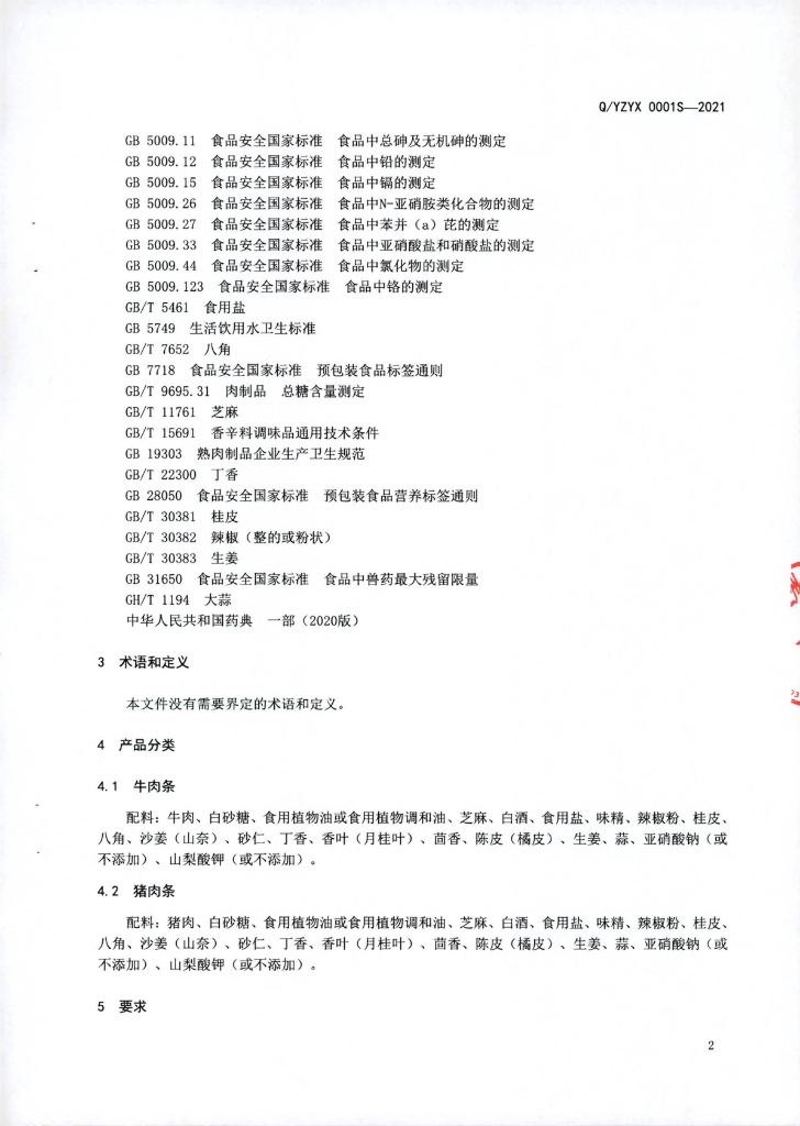 Q/YZYX 0001S-2021 肉条