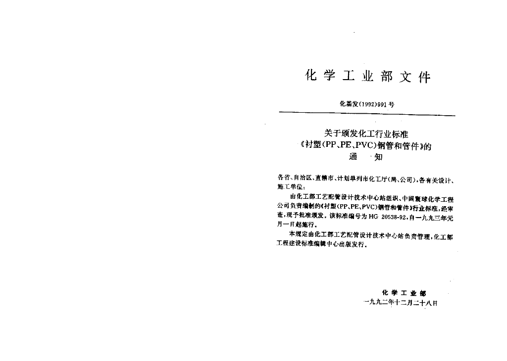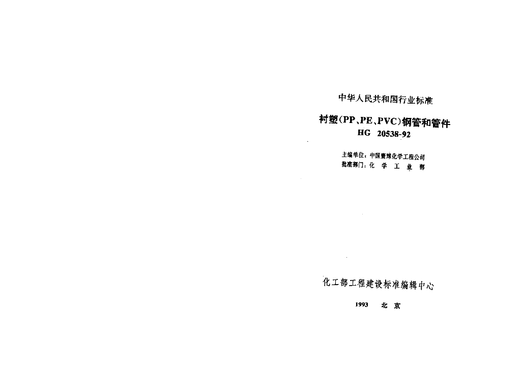 HG 20538-1992 衬塑(PP、PE、PVC)钢管和管件
