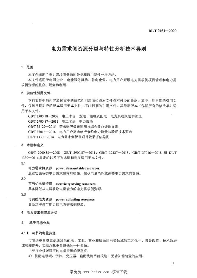 DL/T 2161-2020 电力需求侧资源分类与特性分析技术导则