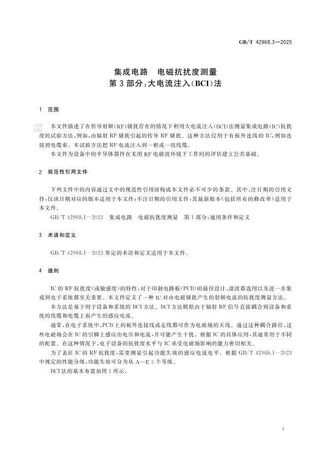 GB/T 42968.3-2025 集成电路 电磁抗扰度测量 第3部分:大电流注入(BCI)法