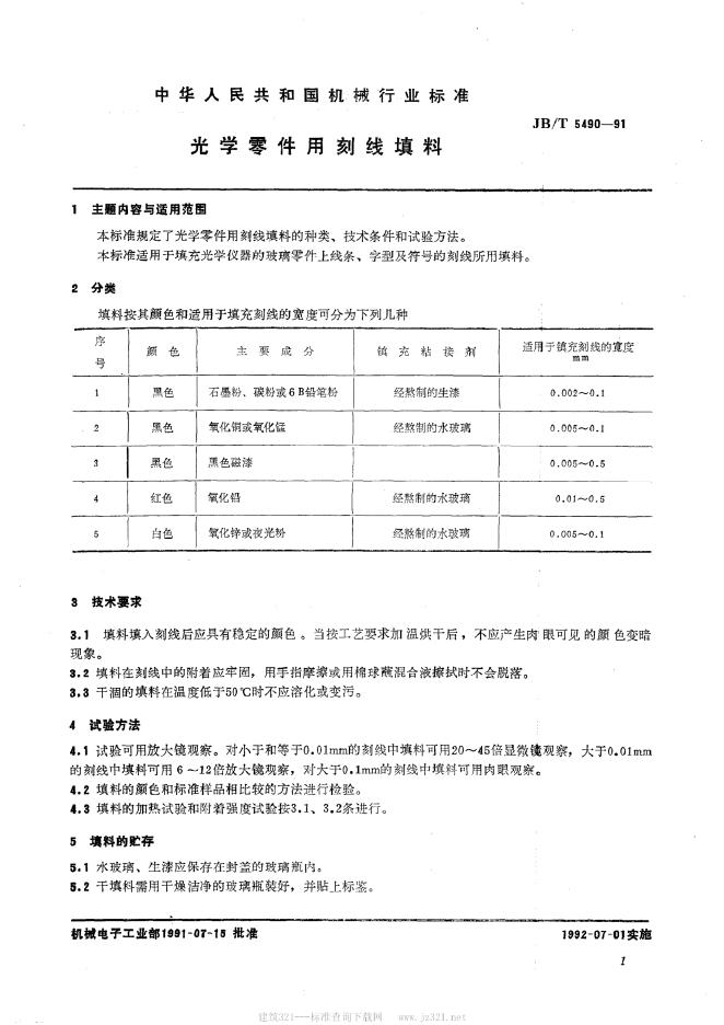 JB/T 5490-1991 光学零件用剖线填料