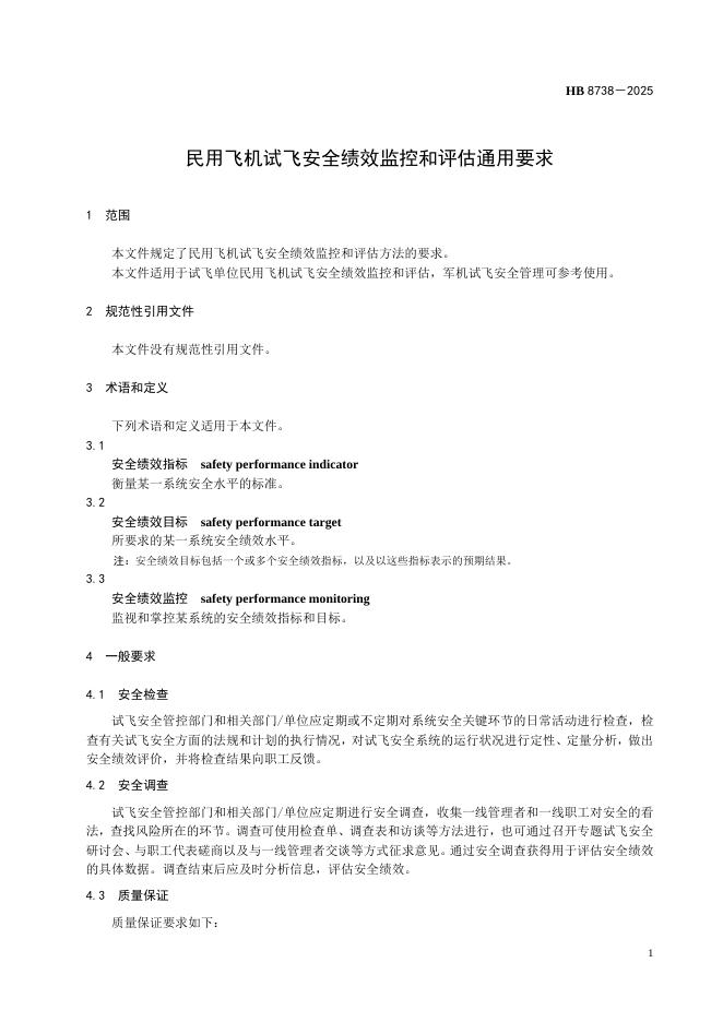 HB 8738-2025 民用飞机试飞安全绩效监控和评估通用要求