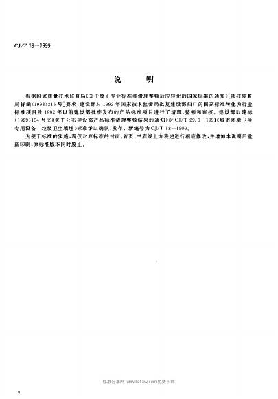 CJ/T 18-1999 城市环境卫生专用设备 垃圾卫生填埋