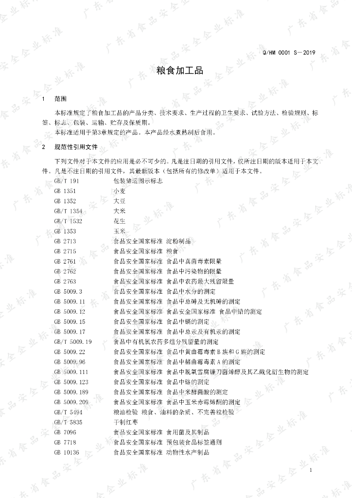 Q/HM 0001S-2019 粮食加工品