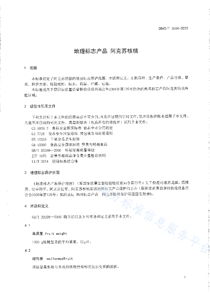 DB65/T 3504-2020 地理标志产品 阿克苏核桃