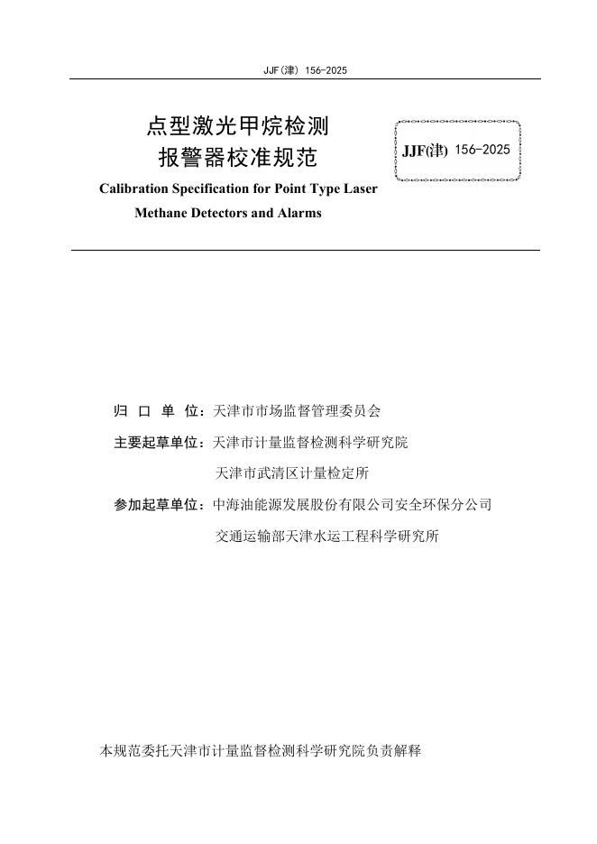 JJF(津)156-2025 点型激光甲烷检测报警器校准规范