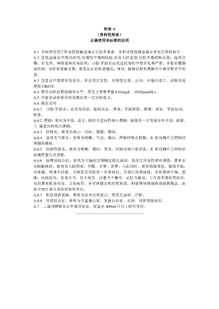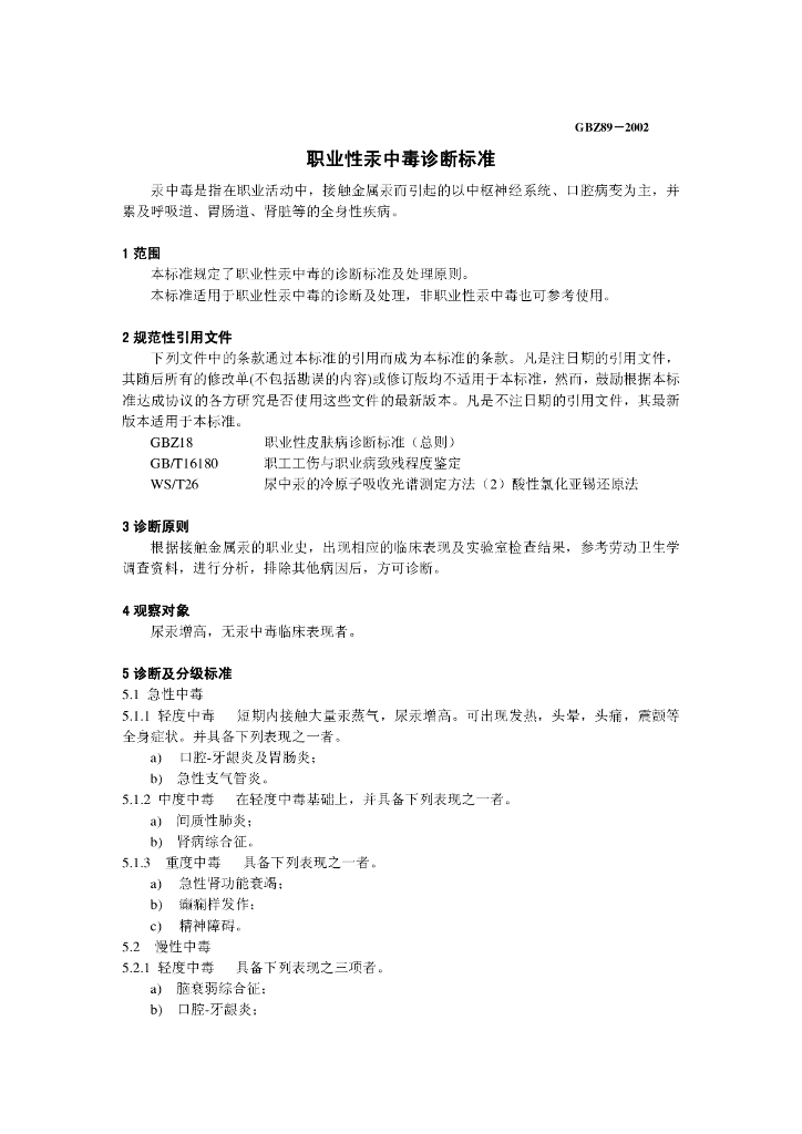 GBZ 89-2002 职业性汞中毒诊断标准