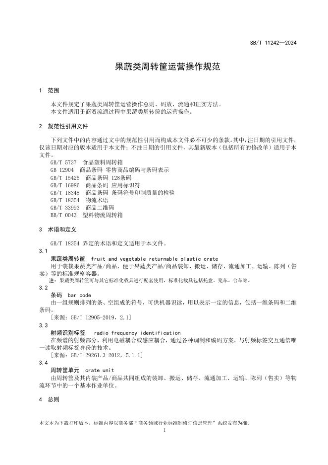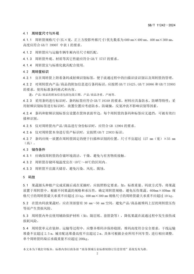 SB/T 11242-2024 果蔬类周转筐运营操作规范