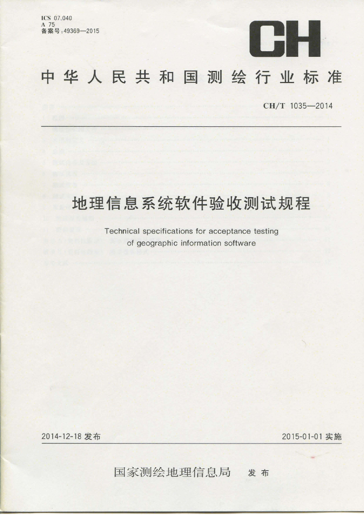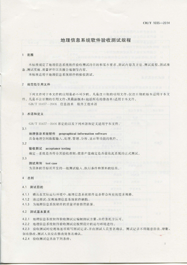 CH/T 1035-2014 地理信息系统软件验收测试规程