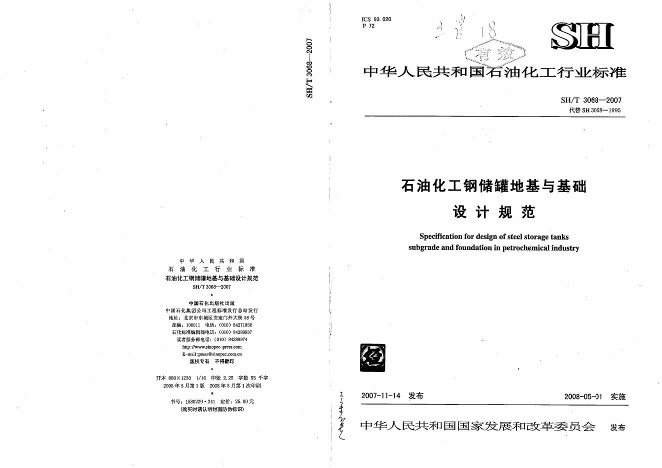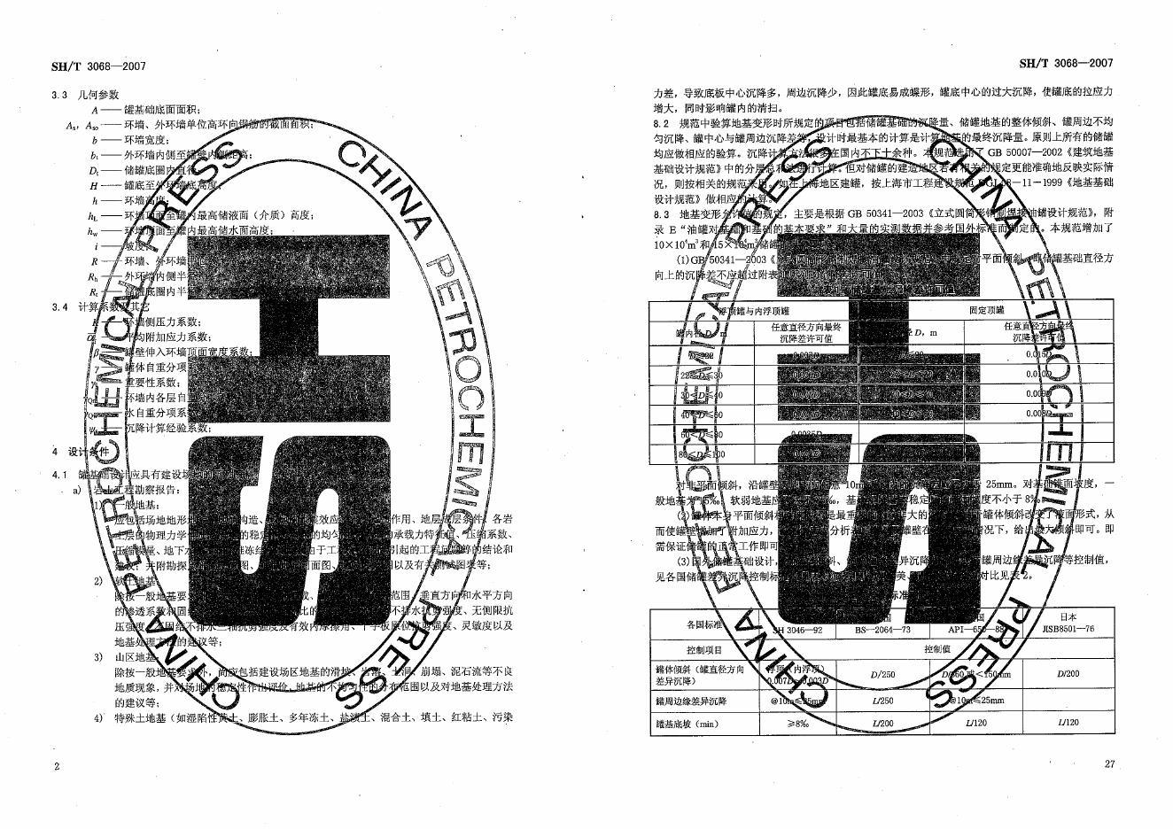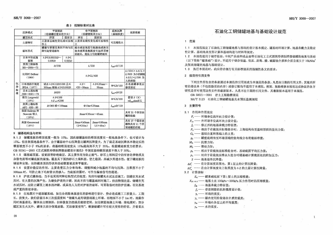 SH/T 3068-2007 石油化工钢储罐地基与基础设计规范