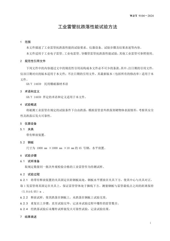 WJ/T 9104-2024 工业雷管抗跌落性能试验方法