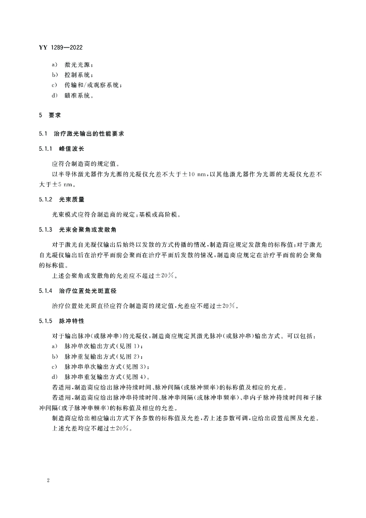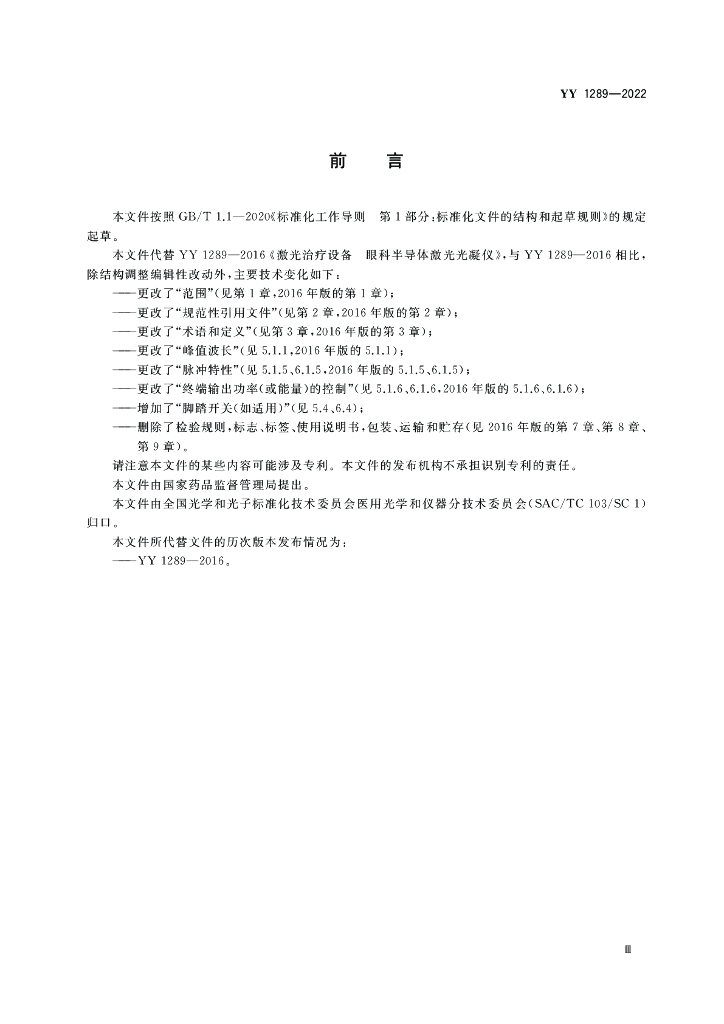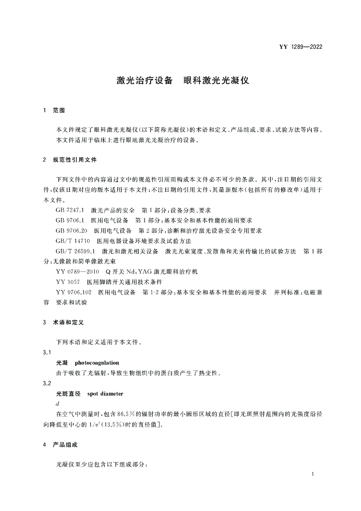 YY 1289-2022 激光治疗设备 眼科激光光凝仪