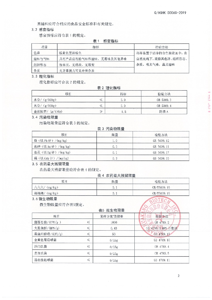 Q/AGHK 0006S-2019 保健食品原料 罗布麻提取物