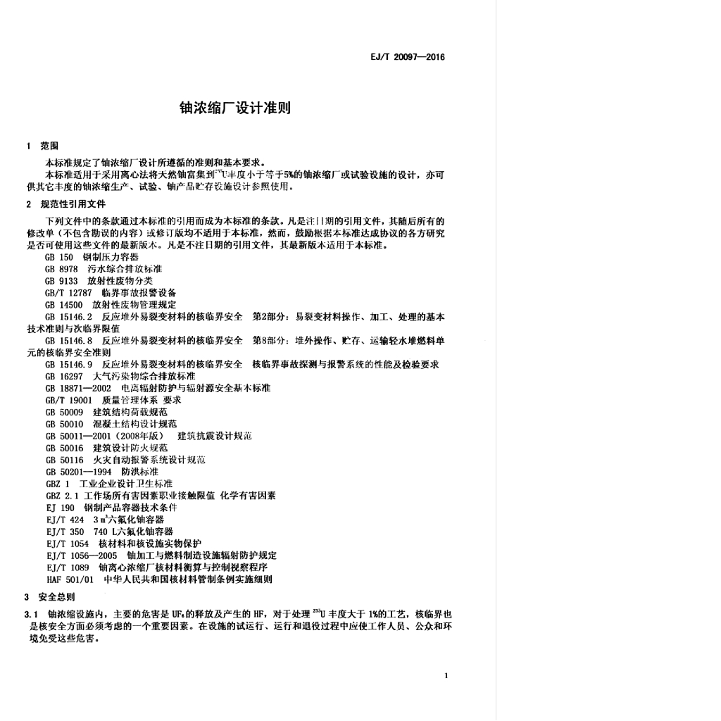 EJ/T 20097-2016 铀浓缩厂设计准则
