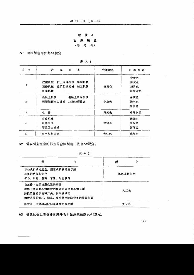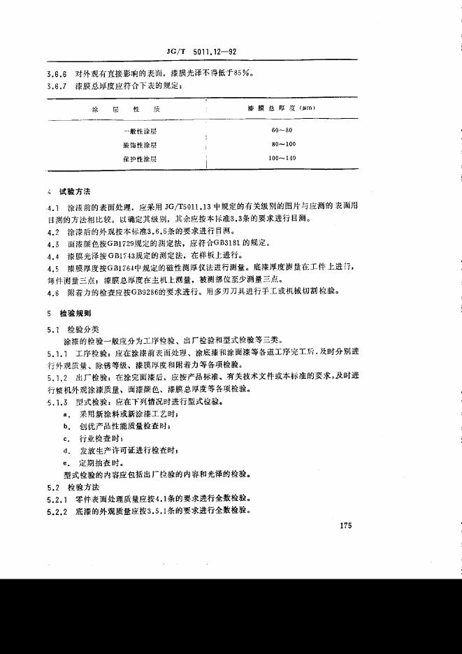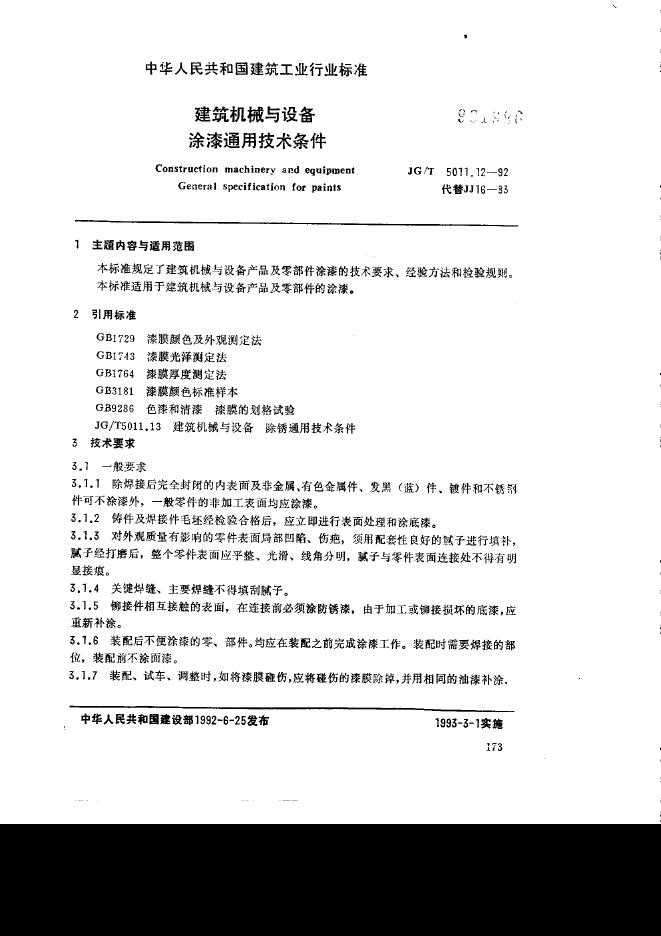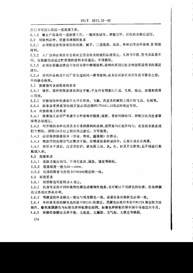 JG/T 5011.12-1992 建筑机械与设备涂漆通用技术条件