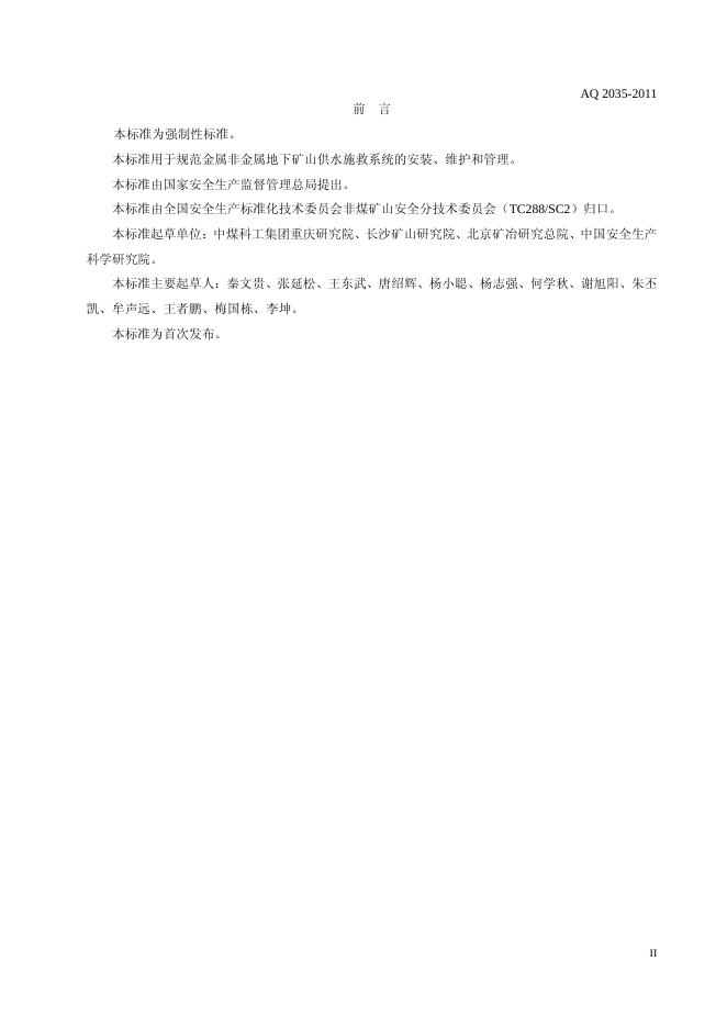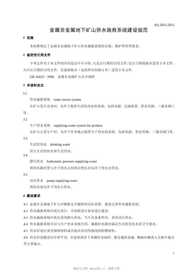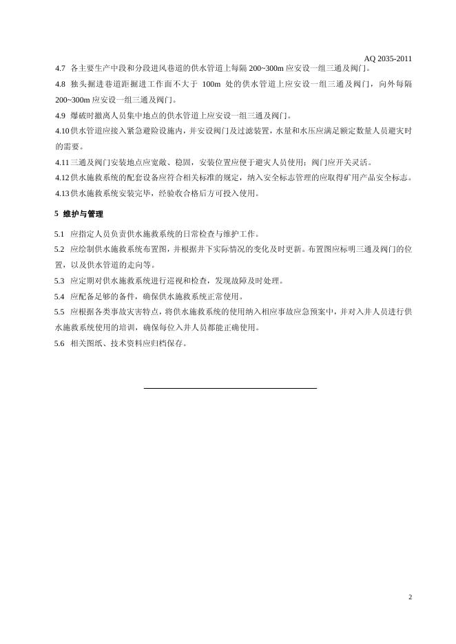 AQ/T 2035-2011 金属非金属地下矿山供水施救系统建设规范