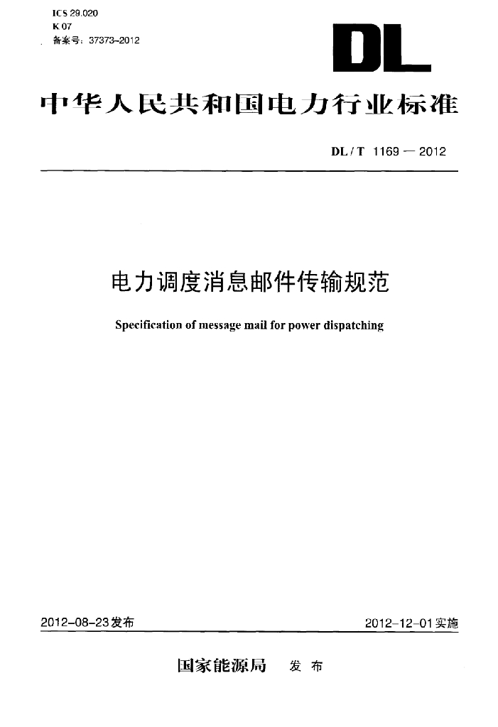 DL/T 1169-2012 电力调度消息邮件传输规范