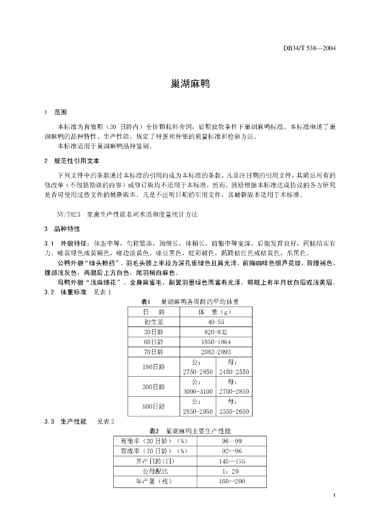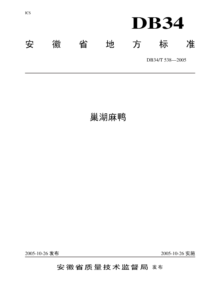 DB34/T 538-2005 巢湖麻鸭
