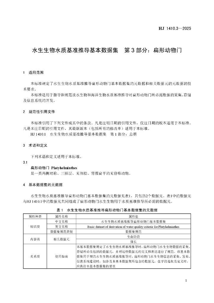 HJ 1410.3-2025 水生生物水质基准推导基本数据集 第3部分:扁形动物门
