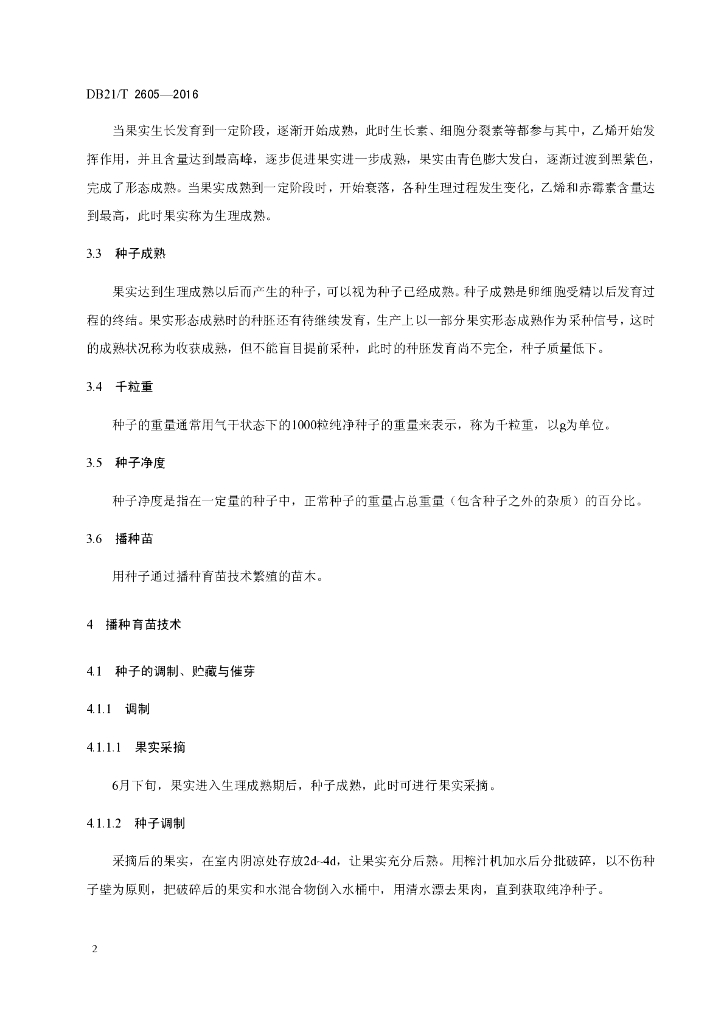 DB21/T 2605-2016 桤叶唐棣播种育苗技术规程
