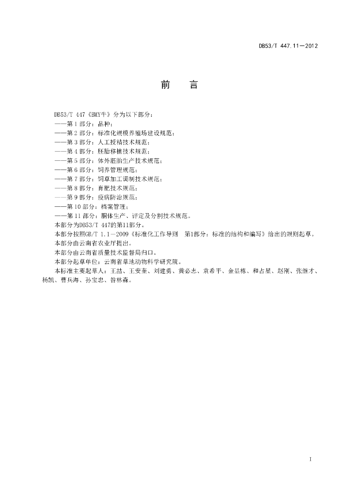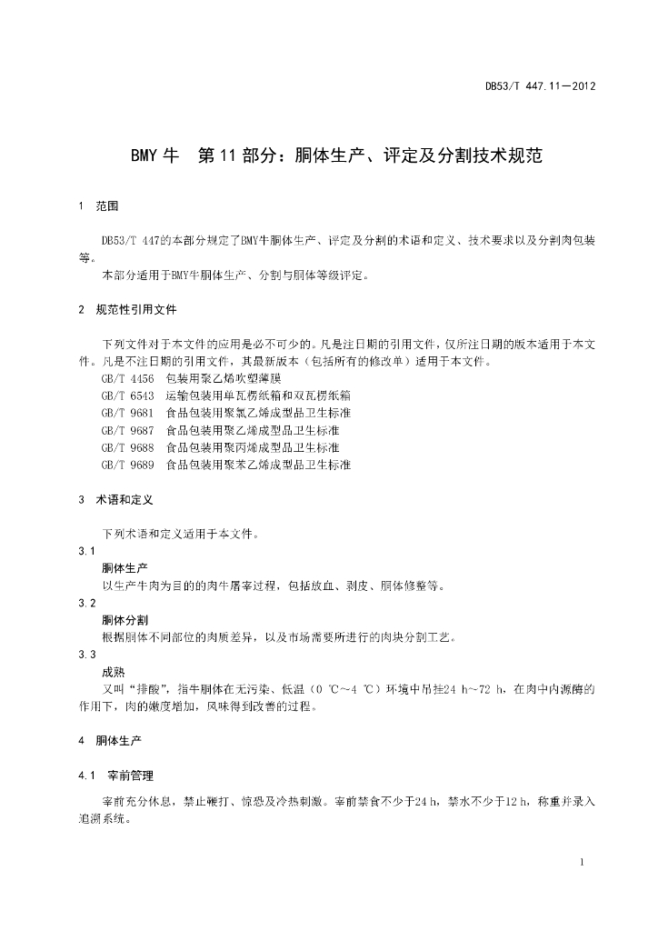 DB53/T 447.11-2012 BMY牛 第11部分:胴体生产、评定及分割技术规范